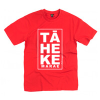 Taheke Marae Tee WHITE ON RED